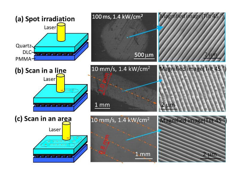 K. Nagato, K. Takahashi, T. Sato, J. Choi, T. Hamaguchi, M. Nakao, “Laser-assisted replication of large-area nanostructures”, J. Mater. Process. Technol. 214 (2014) 2444-2449. http://dx.doi.org/10.1016/j.jmatprotec.2014.05.025