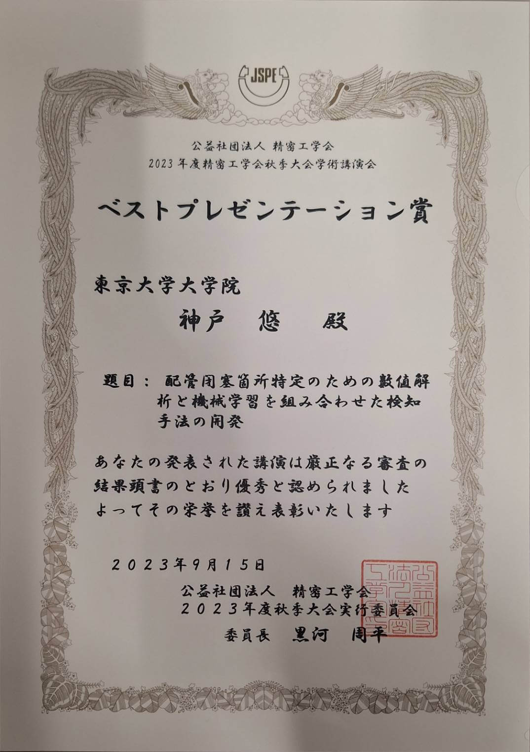 NEWS News カテゴリー カテゴリーを選択 未分類 (9) イベント (30) 実績 (25) 事務 (6) アーカイブ アーカイブ 月を選択 2024年3月 (6) 2023年12月 (1) 2023年11月 (1) 2023年10月 (2) 2023年9月 (2) 2023年8月 (1) 2023年7月 (4) 2023年6月 (2) 2023年5月 (1) 2023年3月 (7) 2023年1月 (1) 2022年12月 (2) 2022年9月 (2) 2022年8月 (1) 2022年6月 (1) 2022年5月 (1) 2022年4月 (1) 2022年2月 (1) 2022年1月 (2) 2021年12月 (2) 2021年10月 (2) 2021年9月 (6) 2021年8月 (1) 2021年6月 (3) 2021年4月 (2) 2021年3月 (4) 2020年10月 (2) 2020年9月 (4) 2020年6月 (1) 2019年11月 (1) 2019年2月 (1) 2018年2月 (1) 2016年7月 (1) ECS@ヨーテボリ、スウェーデンにて、D2田中が発表しました 2023年10月12日 2023/10/12ヨーテボリ,スウェーデンで行われた244 Read More » M1神戸がベストプレゼンテーション賞を受賞しました 2023年9月13日 2023/9/13 M1神戸が2023精密工学会秋季大会にて Read More » 2023電気化学秋季大会@九州大学にて、学生3名が発表しました 2023年9月11日 2023/9/11九州大学にて実施された2023電気化学秋季 Read More » 東大戸田寮で合宿を行いました 2023年8月13日 8/11〜13に静岡県にある東京大学の戸田寮にて合宿を行いま Read More » 馬くんの送別会をしました 2023年7月24日 昨年の夏から1年間、留学に来ていた馬兆啓くんの送別会を行いま Read More » B4中間試問の打ち上げを行いました 2023年7月14日 7/14にB4卒業研究の中間試問が行われました。その労いをこ Read More » EFCF@ルチェルン(スイス)にて、学生3名が発表しました 2023年7月7日 ルチェルン(スイス)で行われた27th EFCF(Europ Read More » AIロボット駆動科学シンポジウムを開催しました 2023年7月5日 2023/7/6 東京国際フォーラムにてAIロボット駆動科学 Read More » 平成輪講会を行いました 2023年6月24日 6/24に工学部2号館13BC講義室にて平成輪講会を行いまし Read More » ページ1 ページ2 ページ3 ページ4 ページ5 ページ6 ページ7 ページ8