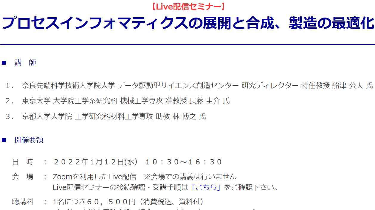 1/28 Convertech JAPAN 2022「プロセス・インフォマティクス」セッション※1にて「データ駆動型プロセスインフォマティクス~機能性材料プロセス開発のハイスループット化を目指して~」※2 と題して招待講演をしました。