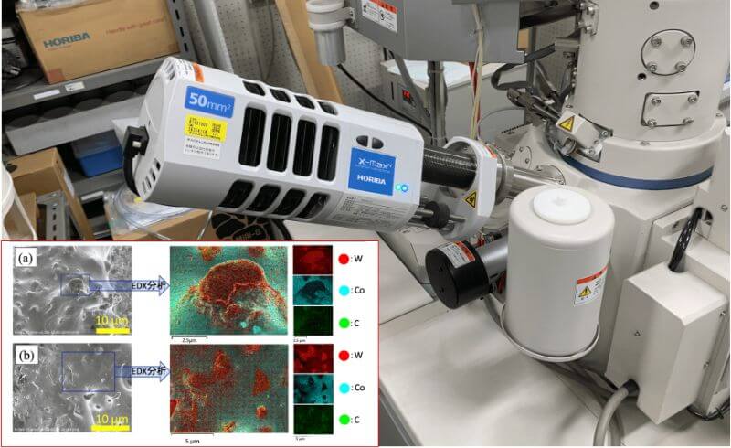 試料に電子線を照射した際に発生する特性X線を検出することで,元素分析や組成分析を行うSEMの追加装置です.中尾研では金属加工や金属3Dプリンタといった研究課題においてよく使われています.